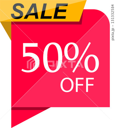 Eye-catching fifty percent discount announcement with yellow and red tag on black background.