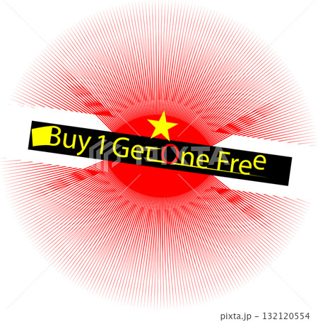 Buy 1 Get 1 Free!!! Sale promotion with trolley shopping cart on pink and blue background