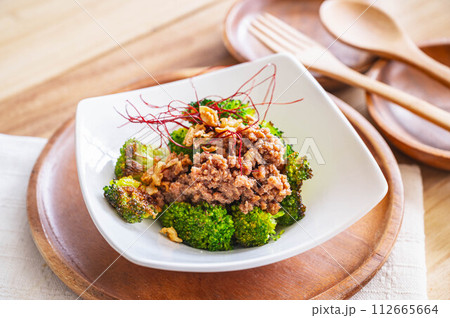 焼きブロッコリーの肉みそがけ