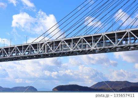 瀬戸大橋と走行中の電車(瀬戸大橋線)