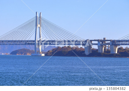 岩黒島から眺める瀬戸大橋(列車走行中)