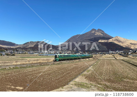 久大本線 由布岳をバックに走行する、別府行きゆふ号