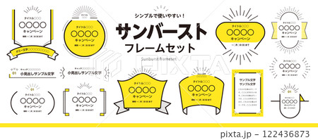 サンバースト・集中線のフレーム素材セット(タイトル、見出し、枠)/黄色