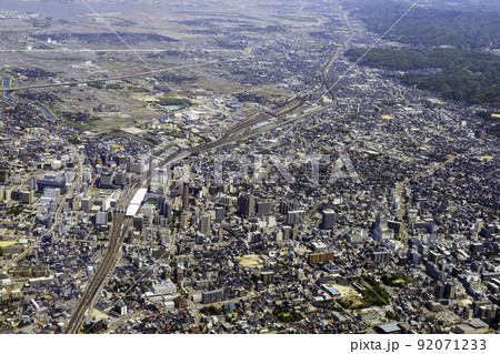 石川県の金沢駅付近を空撮