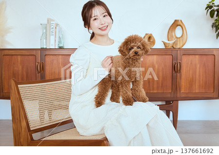 トイプードルと女性 ペットと暮らすナチュラルなライフスタイル