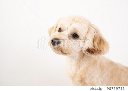 白バックと微笑むマルプーのバストアップ