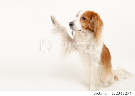 お手をするコーイケルホンディエの愛らしい姿