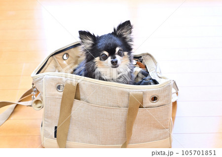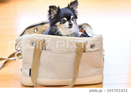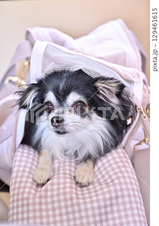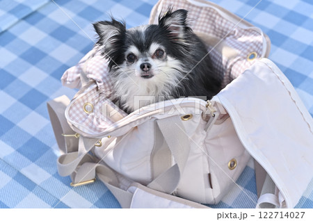 犬用バッグに入る愛犬 ロングコートチワワ
