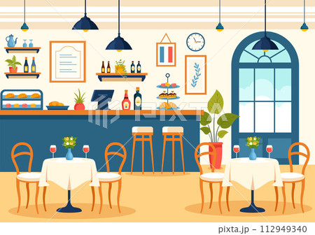 French Cuisine Restaurant Vector Illustration with Various Traditional or National Food Dish of France on Flat Style Cartoon Background
