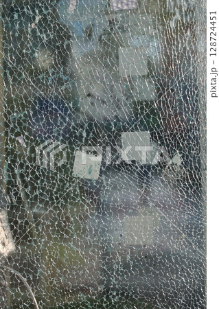Broken glass of showcase or storefront window in shopping mall. Neural network ai generated