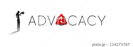 Advocacy concept banner. Woman holding megaphone near Advocacy text banner. Danger warning information. Brand Advocacy Concept. Woman with speaker, fake news attention. Vector illustration