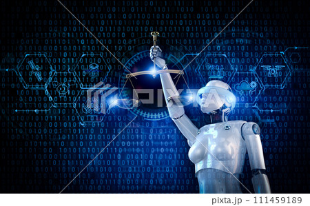 Robotic lady of justice hand hold law scale