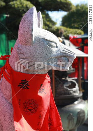 鳥居が綺麗な朱色になった春の見川稲荷神社拝殿と鳥居