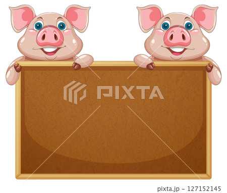 Cheerful Pigs Holding a Blank Sign