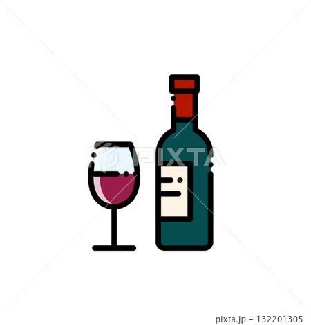 這張圖以可愛彩色風格呈現酒杯與酒瓶,展現溫暖與歡樂氣息,適合酒類主題或設計項目。