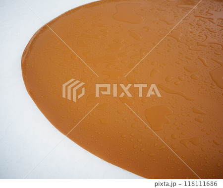 白と黄色の上に輝く雨の水滴、目玉焼きに見える抽象的な一枚