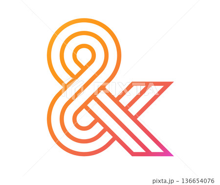 Modern ampersand symbol with a gradient of orange to pink, abstract design