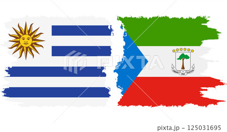 Equatorial Guinea and Uruguay grunge flags connection vector