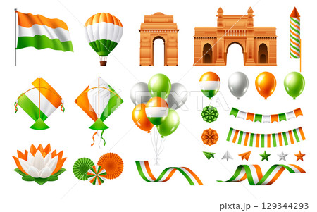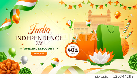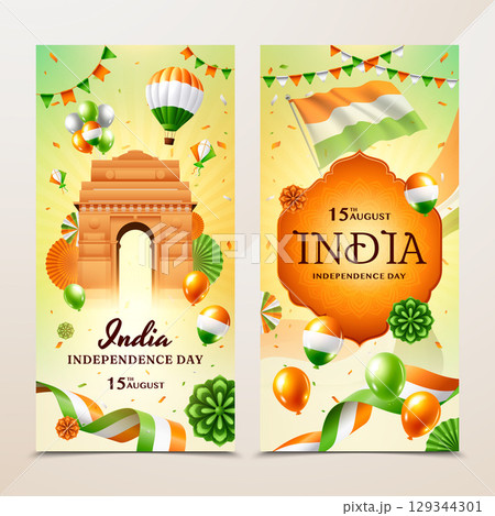 Realistic Patriotic Horizontal Banner for India Independence Day Set