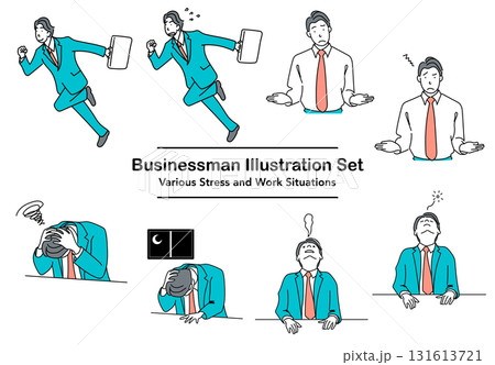 イラスト素材: ストレスを抱えるビジネスマンの表情と動作セット