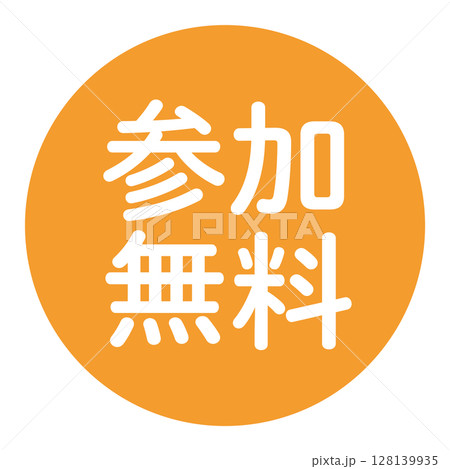 「参加無料」の文字入り 円形のベクターイラスト 白文字 背景透過 オレンジ色