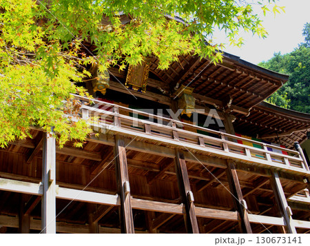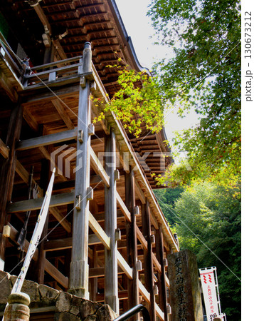 京都・狸谷山不動院の本堂の舞台を見上げる