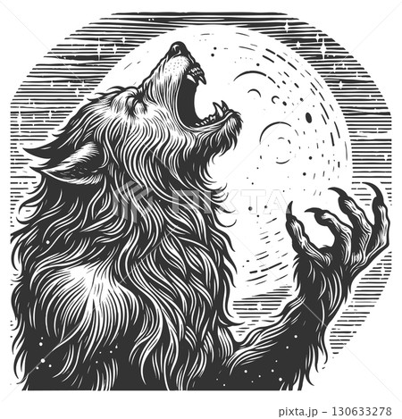 満月の夜に吠える狼男。3Dイラスト、3Dレンダリング。