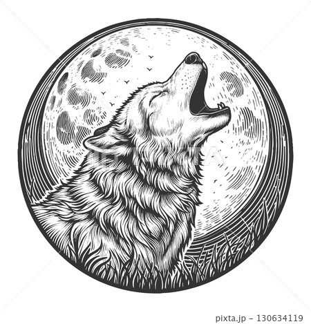Howling wolf against the full moon background and the wilderness. Neural network AI generated art