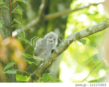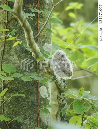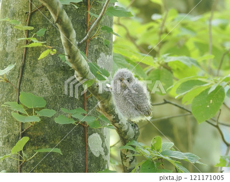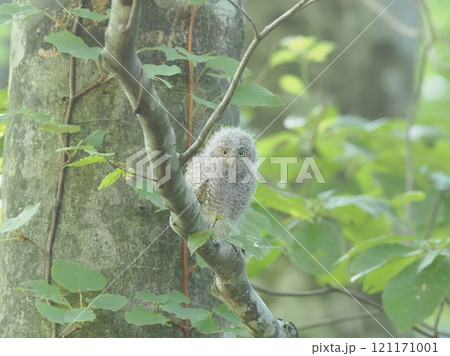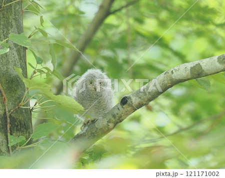 巣立ち間近の子供を見守るエゾフクロウのお母さん