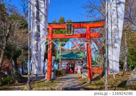 秋の山梨県甲府市昇仙峡のロープウェイ山頂駅付近にある八雲神社