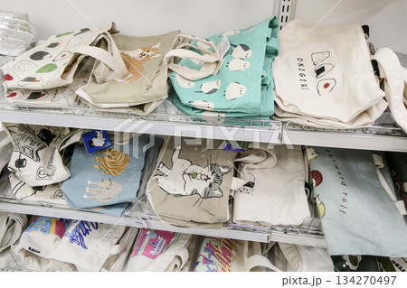 普段遣いの動物や小鳥のイラストのついた袋トートバック