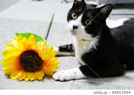 ひまわりとネコ