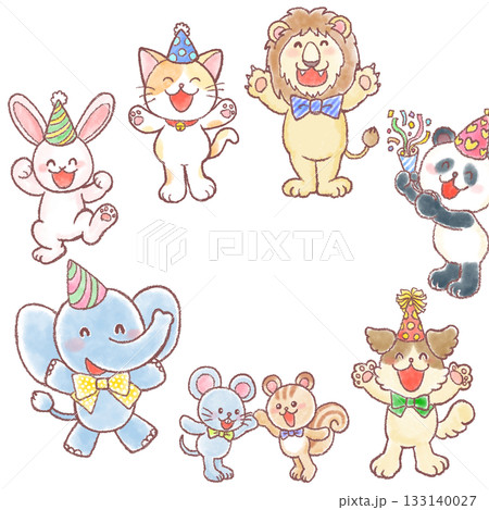 かわいい動物達のパーティー_パーティー衣装をつけたアニマル達