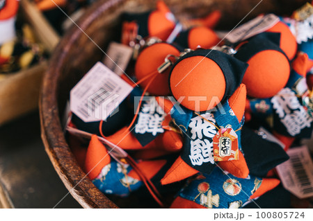 お土産店に並ぶさるぼぼ人形 飛騨高山 お土産