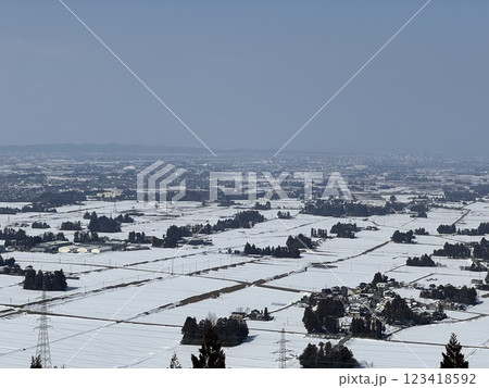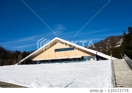 魚沼の里 猿倉山ビール醸造所と雪景色 冬晴れの青空 新潟県南魚沼市
