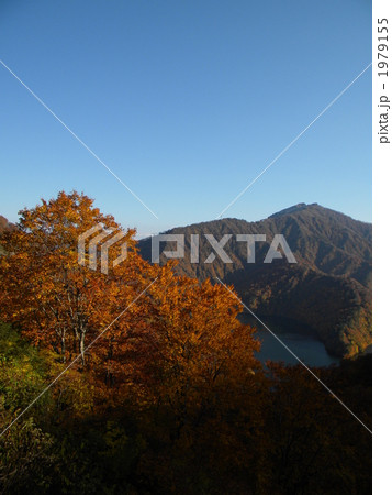 雪解けの只見湖、奥には田子倉ダムと寝観音 福島県只見町