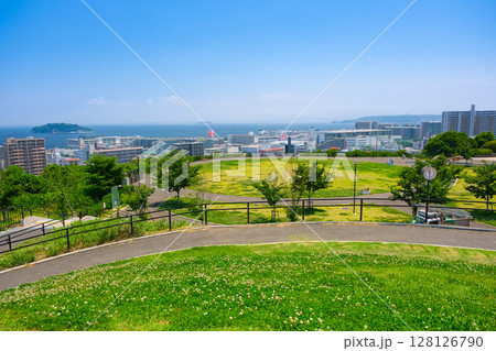 神奈川県横須賀市 平和中央公園、展望広場からの街並み