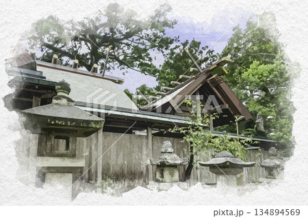 水彩画風 椿大神社 椿岸神社 三重県鈴鹿市