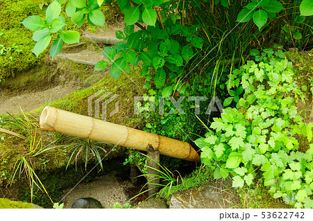庭園 獅子脅し 水 和 涼 日本庭園 庭 和風 苔 緑 風情