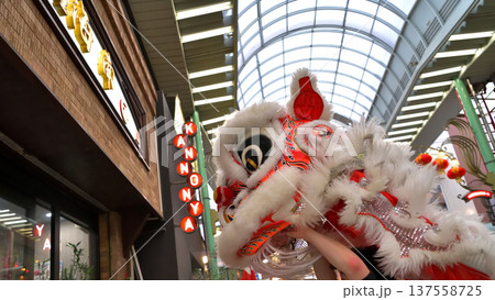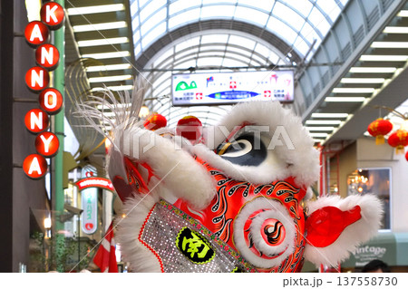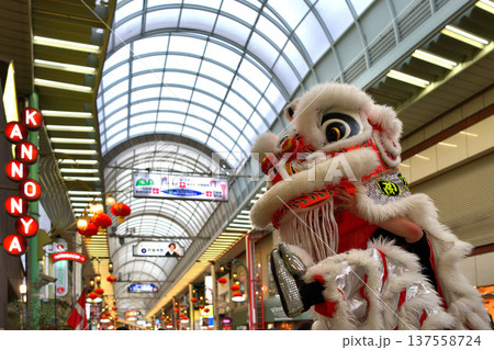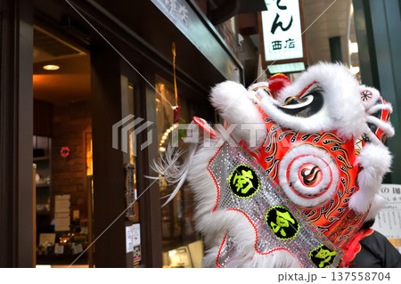 獅子舞 南京町の春節祭 獅子舞彩青「祝儀とリ」