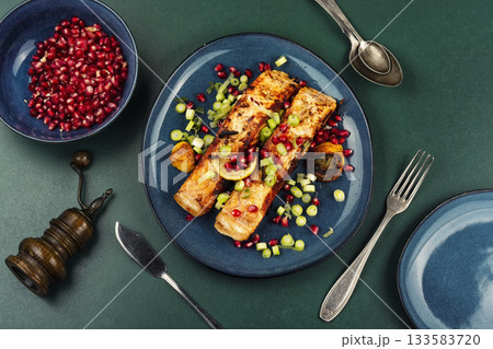 Salmon, baked salmon fish steaks.