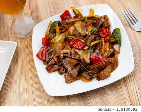 Pork stew with onions, tomatoes and bell peppers. Chinese cuisine