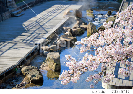 島根県〉春の玉造温泉 玉湯川の足湯と桜