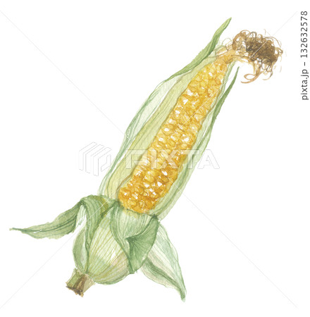 水彩風の野菜、とうもろこし。ベクターイラスト素材