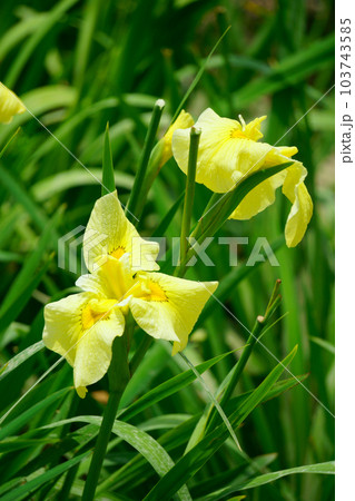 初夏の水辺で鮮やかな色彩を放つ花しょうぶー八