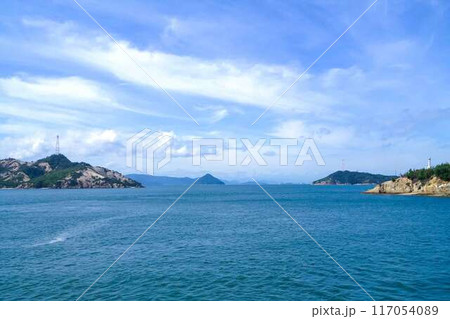 瀬戸内海、備讃瀬戸の女木島沖を行く国際フェリー