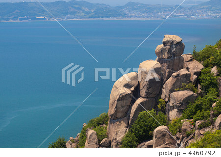 王子ヶ岳山上の奇岩と瀬戸大橋と塩飽諸島 岡山県玉野市