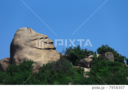 王子ヶ岳 遠望するニコニコ岩と初秋の青空 岡山県玉野市