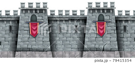 Stone castle wall seamless background, medieval city brick fortification tower, standard, loophole