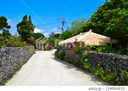 竹富島の石垣のある路地 沖縄の風景